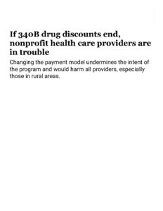26 Sep If 340B drug discounts end, nonprofit health care providers are in trouble – Atlanta Journal-Constitution Posted at 17:20h in by Devon.Seibert-Bailey 0 Comments 0 Likes