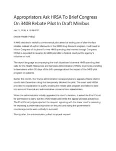 23 Jan Appropriators Ask HRSA To Brief Congress On 340B Rebate Pilot In Draft Minibus Posted at 15:19h in by Makerly Duarte 0 Comments 0 Likes