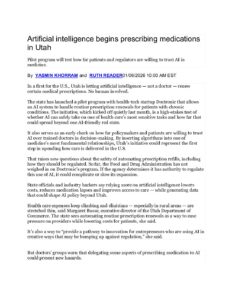 07 Jan Artificial intelligence begins prescribing medications in Utah Posted at 14:12h in by Makerly Duarte 0 Comments 0 Likes