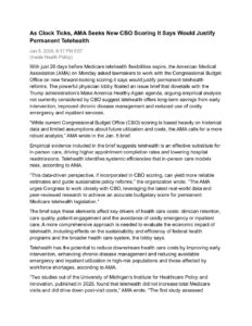 06 Jan As Clock Ticks, AMA Seeks New CBO Scoring It Says Would Justify Permanent Telehealth Posted at 14:33h in by Eve Corriveau 0 Comments 0 Likes