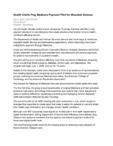 05 Dec Health Chiefs Plug Medicare Payment Pilot for Wearable Devices Posted at 15:50h in by Eve Corriveau 0 Comments 0 Likes