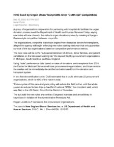 14 Dec HHS Sued by Organ Donor Nonprofits Over ‘Cutthroat’ Competition Posted at 15:43h in by Eve Corriveau 0 Comments 0 Likes