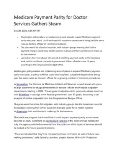 04 Jan Medicare Payment Parity for Doctor Services Gathers Steam Posted at 16:36h in by Makerly Duarte 0 Comments 0 Likes