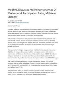 04 Mar MedPAC Discusses Preliminary Analyses Of MA Network Participation Rates Posted at 16:20h in by Makerly Duarte 0 Comments 0 Likes