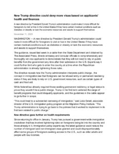 19 Nov New Trump directive could deny more visas based on applicants’ health and finances Posted at 14:29h in by Eve Corriveau 0 Comments 0 Likes