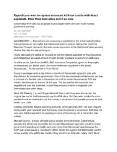 14 Nov Republicans want to replace enhanced ACA tax credits with direct payments Posted at 14:11h in by Eve Corriveau 0 Comments 0 Likes