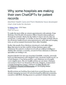 28 Jan Why some hospitals are making their own ChatGPTs for patient records Posted at 14:04h in by Makerly Duarte 0 Comments 0 Likes